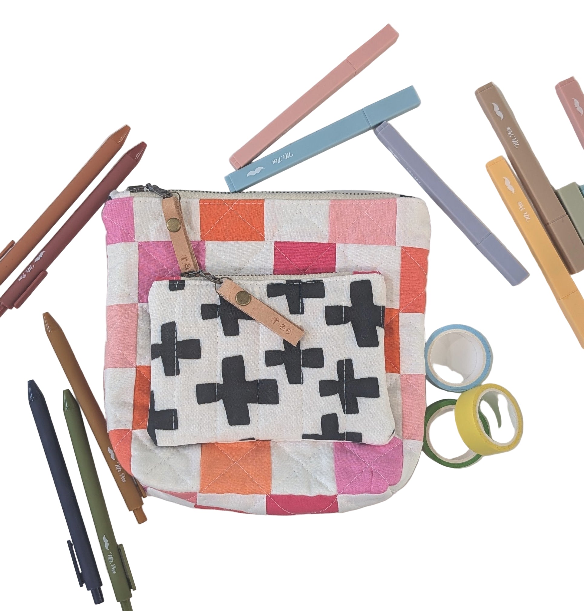 Celebrate color and craftsmanship with the Clementine & Plus Sign Bundles—a cheerful, practical set of handmade fabric pouches made for joyful organization.
